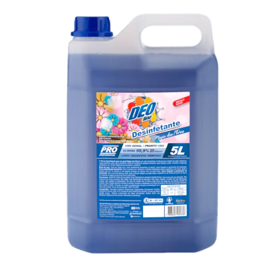 O Deoline Desinfetante – Magia das Flores de uso geral com ação bactericida é ideal para limpeza de pisos, banheiros, vasos sanitários, ralos, pias e lavatórios. Indicado para uso em qualquer ambiente, como escolas, hotéis, indústrias, shoppings, residências, etc. Deixa uma fragrância agradável no ambiente.