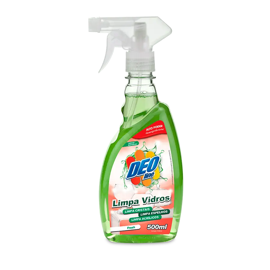 O Deoline Limpa Vidros – Fresh tem alto poder desengordurante, desenvolvido para limpeza de vidros, espelhos em geral, cristais e peças acrílicas. Deixa uma camada anti-redepositante, o que impede que partículas se depositem na superfície, facilitando a próxima limpeza. Secagem rápida e suave aroma no ambiente.