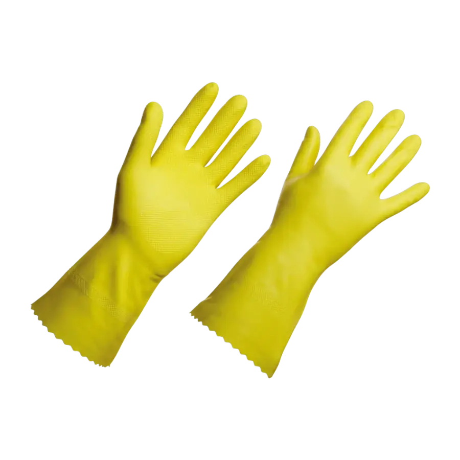Fabricada em látex natural aditivado, impermeabilizada com verniz silver e agente redutor antialérgico. Dedos e palmas das mãos com textura antiderrapante. Punhos com acabamento em virola.